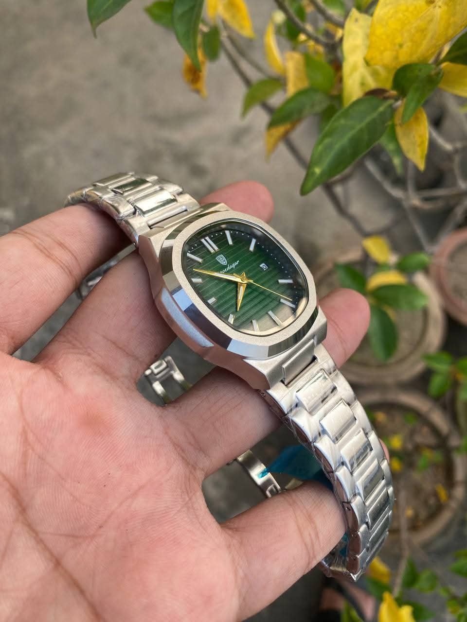 Poedagar 613 Luxury Stainless Steel Strap Watch (Green Dial)